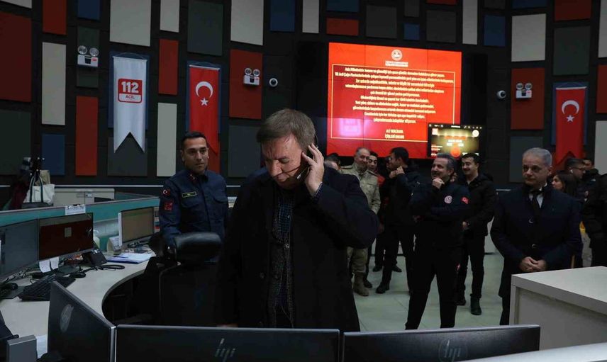 Ziyaret sırasında merkezde görev yapan personele teşekkür eden ve yeni yıllarını kutlayan Vali Aydoğdu, merkezin işleyişini yakından inceleyip gelen bir çağrıyı bizzat yanıtladı; çağrıyı bırakan vatandaşın yeni yılını tebrik etti.