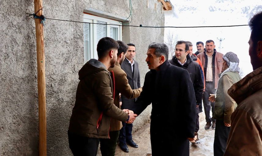 Şırnak Valisi Birol Ekici, Beytüşşebap ilçesine bağlı Beşağaç köyünde evlerin üzerine düşen çığın etkilediği aileyi ziyaret etti.
