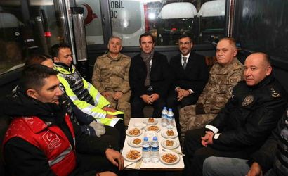 Vali Karakaya, yılbaşı kapsamında Merkez İlçe Jandarma Komutanlığı, Bölge Trafik Denetleme Şube Müdürlüğü, Mobil Göç Noktası 2 ve Polis Yol Kontrol Noktasıı ziyaret etti. Görevli personelle bir araya gelen Karakaya, fedakar çalışmaları için personele teşekkür ederek yeni yıl dileklerinde bulundu.