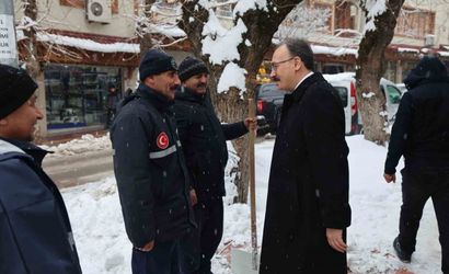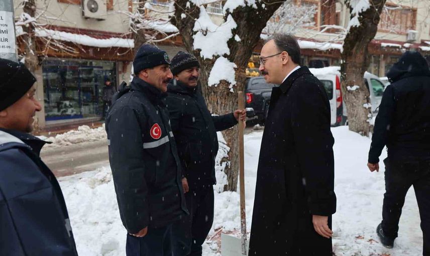 Vali Kızılkaya, yoğun kar yağışına rağmen kent genelinde fedakârca görev yapan belediye ekiplerini sahada ziyaret ederek yürütülen çalışmalara ilişkin bilgi aldı ve personele emekleri dolayısıyla teşekkür etti.