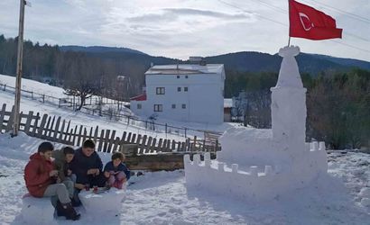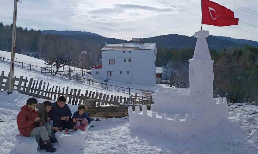 Sivas'ta kardan yapılan Kız Kulesi kısa sürede sosyal medyada ilgi gördü