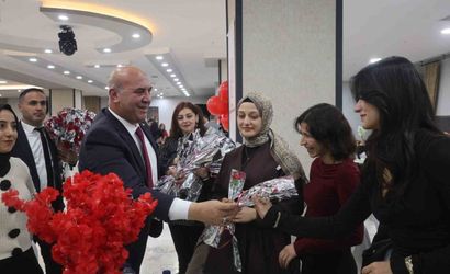 İl Milli Eğitim Müdürü Mehmet Nurettin Aras’ın Van'da okul müdürlüğü yaptığı dönemdeki öğrencileri de programa özel misafir olarak katıldı. Aras, masaları tek tek gezerek öğretmenlerin Öğretmenler Günü’nü kutladı, çiçek takdim ederek emek ve gayretleri için teşekkür etti.