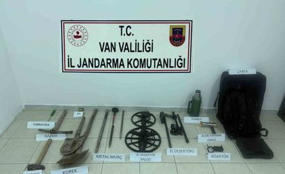 Ele geçirilen malzemeler arasında; 1 adet el detektörü, 1 adet alan tarama cihazı, 4 adet pil, 1 adet kazma, 1 adet çekiç, 1 adet kürek, 4 adet demir murç, 1 adet tornavida, 1 adet termos, 1 adet şarj kablosu, 1 adet detektör taşıma çantası ve 1 adet alan tarama cihazı taşıma çantası yer aldı. Söz konusu eşya muhafaza altına alındı.