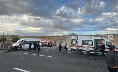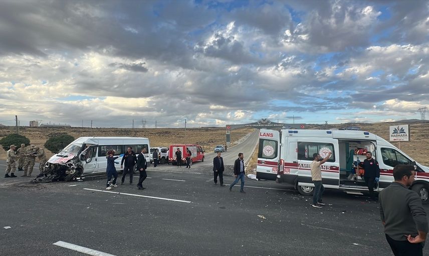 Van'ın Erciş ilçesinde öğrenci servisi ile tırın çarpışması sonucu 11'i öğrenci 14 kişi yaralandı.