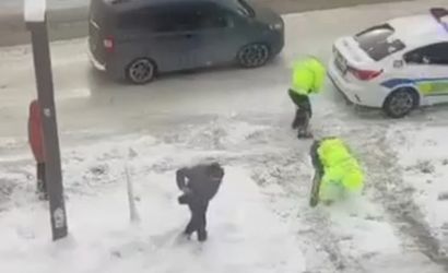 VAN’DA ETKİLİ OLAN KAR YAĞIŞI KENTE BEYAZ BİR ÖRTÜ KAZANDIRIRKEN, SOĞUK HAVAYA RAĞMEN YÜREKLERİ ISITAN ANLAR YAŞANDI. GÖREV BAŞINDAKİ TRAFİK POLİSLERİ, KARIN TADINI ÇIKARAN ÇOCUKLARA EŞLİK EDEREK ONLARLA KARTOPU OYNADI.
