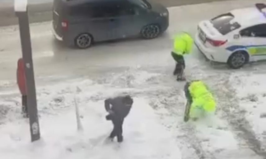 Van'da etkili kar yağışı kenti beyaza bürürken, soğuk havaya rağmen iç ısıtan bir görüntü kaydedildi. Görev başındaki trafik polisleri, karın tadını çıkaran çocukların yanına gelerek onlarla kartopu oyunu oynadı.