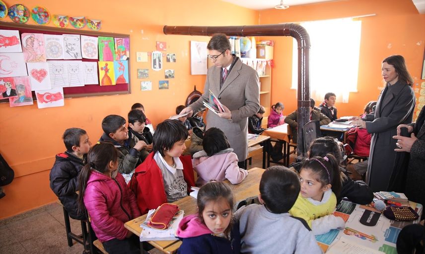 Van'ın Erciş ilçesinde kurslara katılan kadınlar, hazırladıkları bez çanta, kalemlik ve bileklikleri kırsaldaki çocuklara ulaştırdı. Kaymakam Murat Karaloğlu ile Bozyaka İlkokulu'nu ziyaret eden kursiyerler, hazırladıkları ürünleri teslim etti.