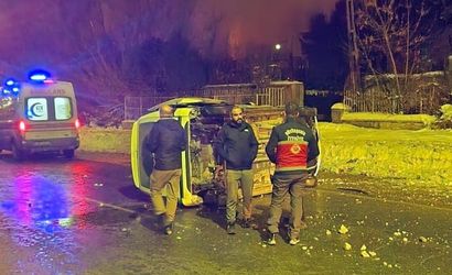 Yeni Cami Mahallesi sahil yolunda meydana gelen kazada kapalı kasa kamyonet devrildi