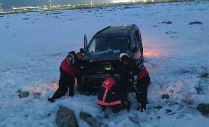 Van’ın Edremit ilçesinde A.B. yönetimindeki 26 AIK 204 plakalı Citroen marka kapalı kasa hafif ticari kamyonet, Van Gölü Sahil Yolu üzerinde şarampole yuvarlanarak kaza yaptı.