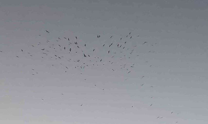 Akşam saatlerinde gökyüzünde şekillenen dinamik desenler, çevredeki sakinleri ve ziyaretçileri kısa süreliğine de olsa büyüledi; göl manzarası ve kuşların uyumlu uçuşu, bölgedeki doğal zenginliğin bir başka örneği olarak kayda geçti.