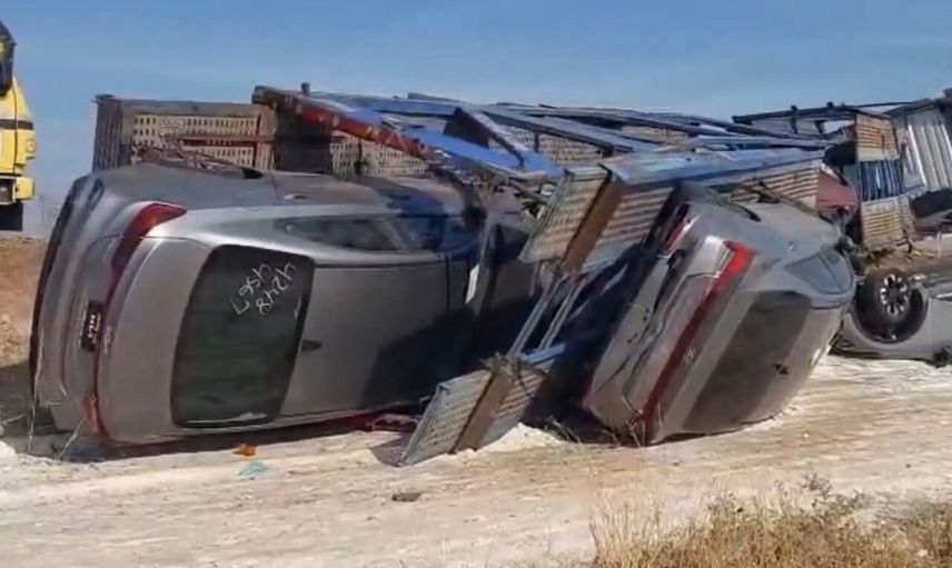 Şanlıurfa'nın Viranşehir ilçesinde yüklü bulunan sıfır otomobillerin zarar gördüğü kaza, Şanlıurfa- Viranşehir karayolunun 5. kilometresinde meydana geldi.