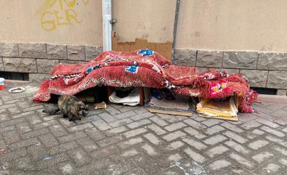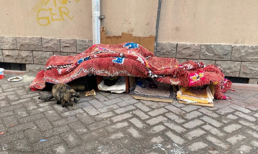 Soğuyan havalara karşı karton ve geri dönüşüm malzemeleriyle geçici barınak