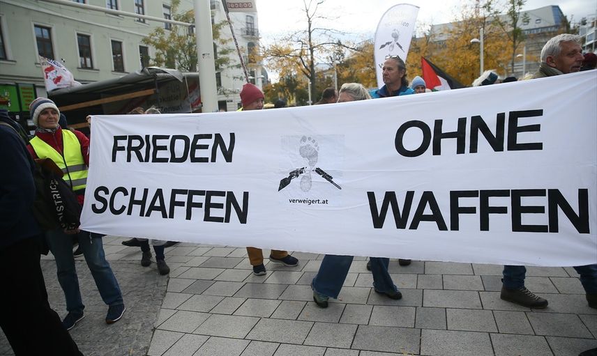 Avusturya'nın başkenti Viyana'da yüzlerce kişi, "barış, tarafsızlık ve egemen bir Avusturya için" gösteri düzenledi. Birçok sivil toplum kuruluşunun ortak düzenlediği gösteride, çatışmaların olduğu ülkelere silah sevkiyatına devam ettiği ve Gazze'de soykırım işleyen İsrail'e destek verdiği gerekçesiyle Avusturya hükümeti protesto edildi.