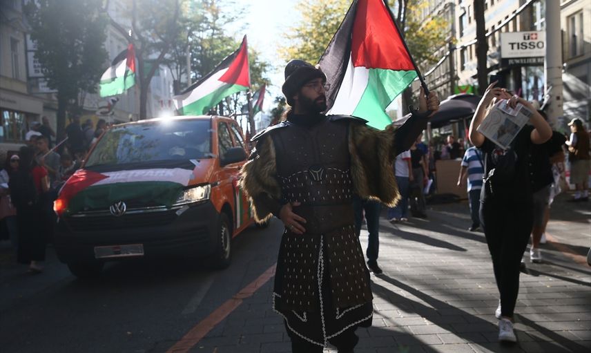 Avusturya'nın başkenti Viyana'da Filistin'e destek için toplanan binlerce kişi, İsrail'e yaptırım çağrısıyla gösteri düzenledi.