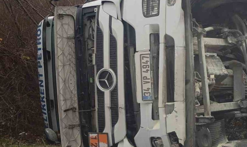 Vize-Soğucak yolunda petrol tankeri devrildi