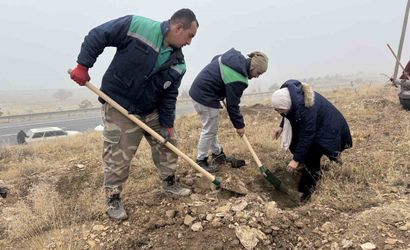 Kayseri Büyükşehir Belediyesi ilçelerdeki ağaçlandırma çalışmalarını sürdürüyor