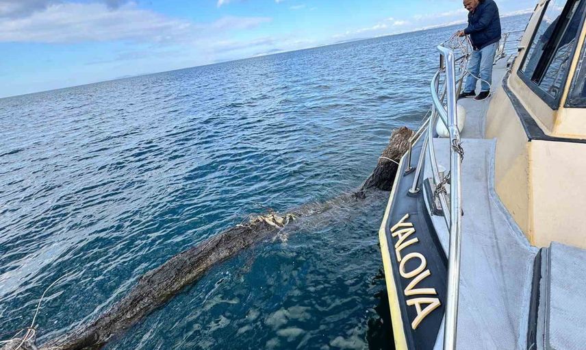 Yalova İl Tarım ve Orman Müdürlüğü Balıkçılık ve Su Ürünleri Şube Müdürlüğü ekipleri, Marmara Denizi'nde, İstanbul ile Yalova arasındaki feribot seyir hattına yakın bir noktada deniz yüzeyinde sürüklenen büyük bir ağaç gövdesi tespit etti.