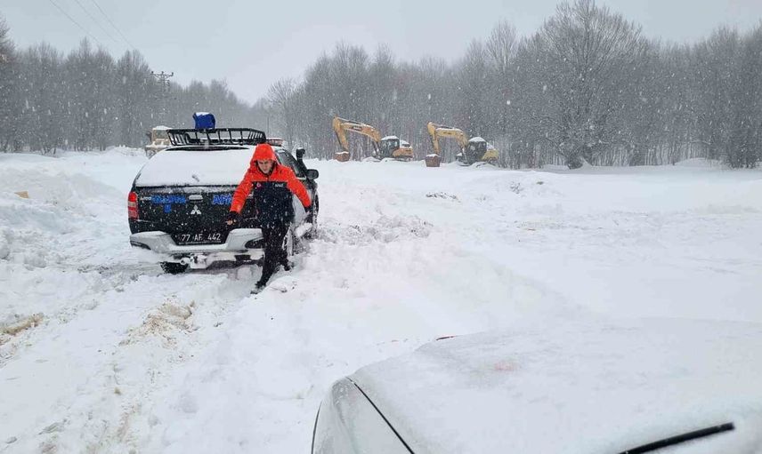 Yalova'nın Çınarcık ilçesine bağlı Delmece Yaylası'nda, Teşvikiye beldesi yakınlarında yoğun kar yağışı ve tipi nedeniyle mahsur kalan 1'i çocuk olmak üzere 5 kişi için ekipler harekete geçti.