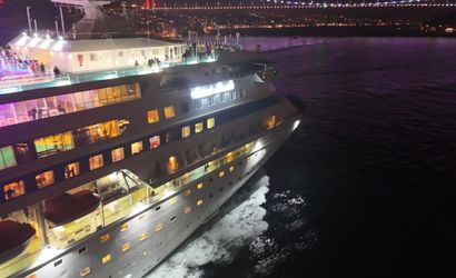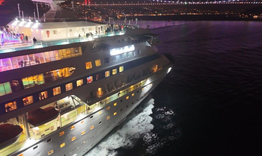 Astoria Grande isimli Rus kruvaziyer, Sarayburnu Limanı'na yanaşma izni alamayınca akşam saatlerinde İstanbul açıklarından ayrılarak Karadeniz'e doğru yola çıktı. Gemi, havadan görüntülendi.