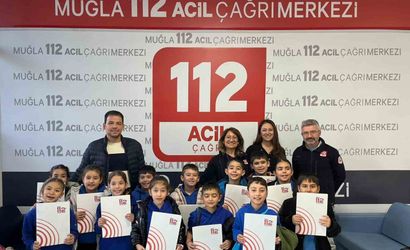 Muğla'nın Menteşe ilçesindeki Yenice İlkokulu öğrencileri, 112 Acil Çağrı Merkezini ziyaret ederek acil durumlarda doğru davranış ve çağrı yapma konularında eğitim aldı.