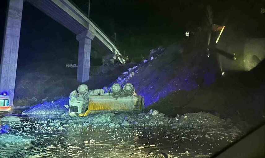 YHT şantiyesinde kamyon 15 metre yükseklikten devrildi: Sürücü ağır yaralandı