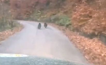 Yığılca'da kış uykusuna yatmayan iki yavru ayı kamerada