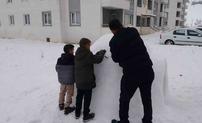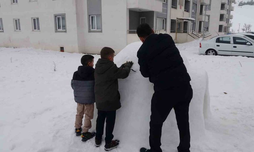 Yozgat’ta etkili kar yağışının ardından Ersoy ailesi, mahallede sıra dışı bir çalışma başlattı. Sinan Ersoy ile oğulları Nuri ve Yunus, kardan bir iglo — yerel ifadeyle eskimo evi — yaparak hem kendileri hem de mahalle sakinleri için oyun alanı oluşturdu.