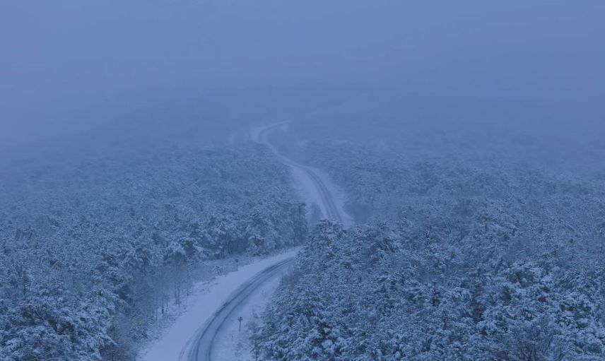 Ormandaki beyaz örtü ve eşsiz görünüm, dron ile havadan görüntülendi; kayıtlarda bölgenin kışa hazırlanan yüzü öne çıktı.