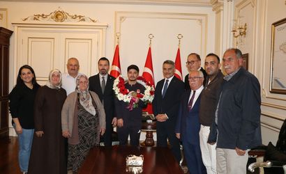 Karşılamada Muhammed Furkan ailesiyle birlikte, Gençlik ve Spor İl Müdürü Şahin Hopur ve diğer sporcular tarafından karşılandı. Ardından Vali Mehmet Ali Özkan’ı ziyaret etti.