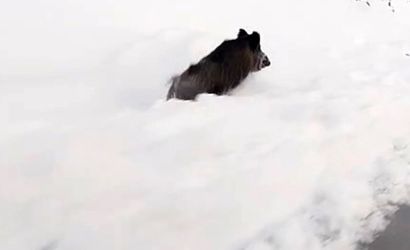 İlçenin Onbaşılar mevkiinde yer alan Meşkan Tepesi yolunda seyir halinde olan Muğdat Şen, aniden önüne çıkan domuz sürüsünü görüntüledi. Karlar içinde panikle kaçan hayvanların görüntüleri kameralara yansıdı.