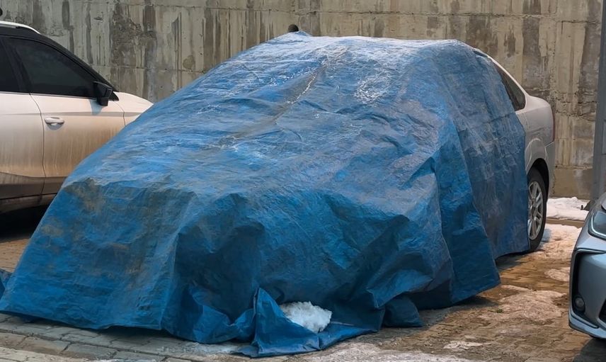 Park halindeki araçların üzerine branda serilirken, bazı sürücüler araçlarını battaniye ve poşetlerle sardı. Sürücüler, "Sabaha kadar park halinde kaldığında araç çalışmıyor; bu yöntemle önüne geçiyoruz" diyerek uyguladıkları yöntemi anlattı.