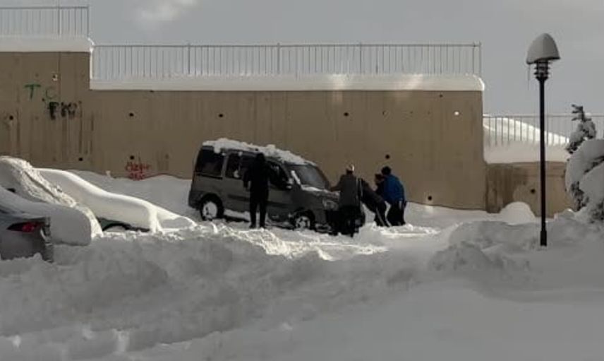 Yoğun kar ulaşımı aksattı, mahalle sakinleri yardıma koştu