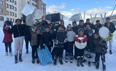 Rabia Geçirgen ise yazın buna benzer etkinlikleri özlediklerini belirterek, 'Yoğun bir kar yağışı oldu, bugün de hava çok güzel. Yaklaşık 50 arkadaşımızla toplandık. Tahta, tepsi ve bidonlarla evimizin önündeki yokuşta kayıyoruz. Çok keyifli geçiyor' ifadelerini kullandı.