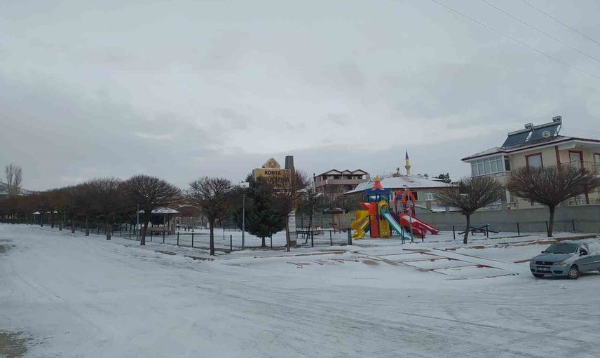 KONYA'NIN YUNAK İLÇESİNDE MEVSİMİN İLK KARI YAĞDI, İLÇE BEYAZA BÜRÜNDÜ.