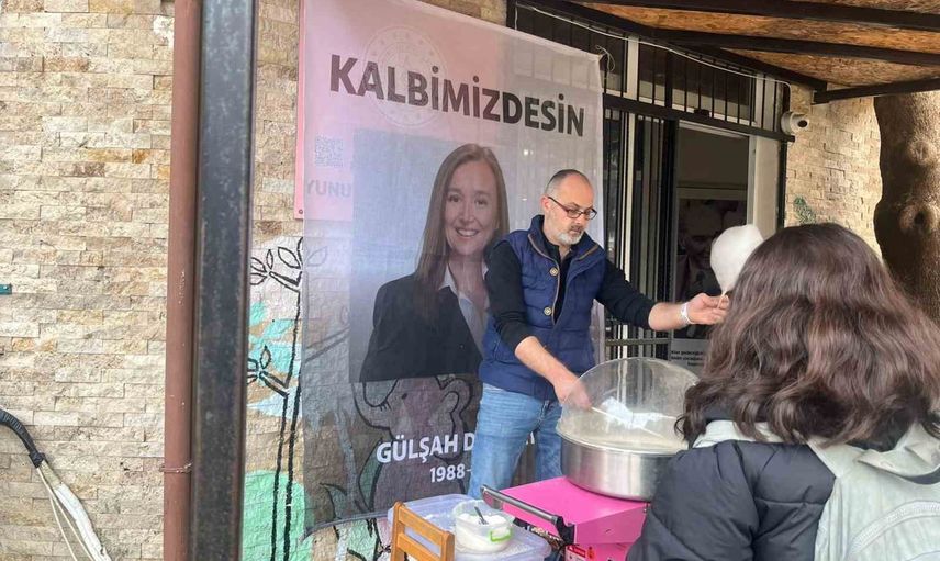 Yunusemre Belediyesi Kaynak Anaokulu öğretmenleri, merhum Manisa Büyükşehir Belediye Başkanı Ferdi Zeyrek ile merhume Şehzadeler Belediye Başkanı Gülşah Durbay anısına okul önünde pamuk şeker dağıtımı yaparak çocukları gülümsetti.