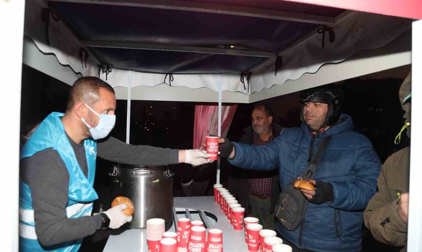Sosyal belediyecilik kapsamında erken saatlerde ücretsiz sıcak çorba dağıtımı