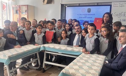 Tekin, ayrıca protokolün Erzurum'daki temel eğitim çağındaki tüm çocukları kapsayacağını ve yıl içinde okullara bu malzemelerin dağıtılacağını duyurdu.