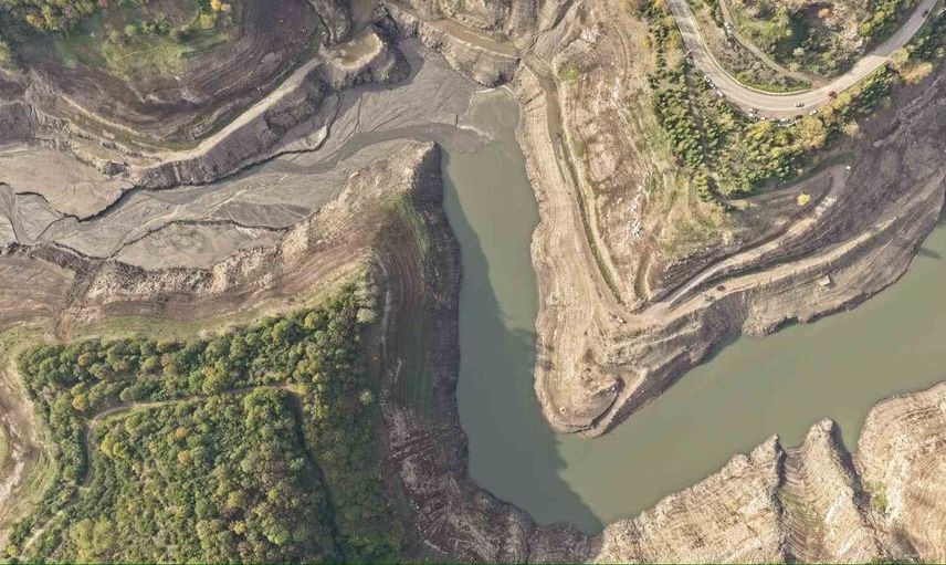 KOCAELİ'NİN İÇME SUYU İHTİYACININ ÖNEMLİ BİR BÖLÜMÜNÜ KARŞILAYAN YUVACIK BARAJI'NDA DOLULUK ORANI YÜZDE 11'E KADAR GERİLERKEN, BARAJ HAVZASINDAKİ ESKİ KÖPRÜ YENİDEN GÖRÜNÜR HALE GELDİ.