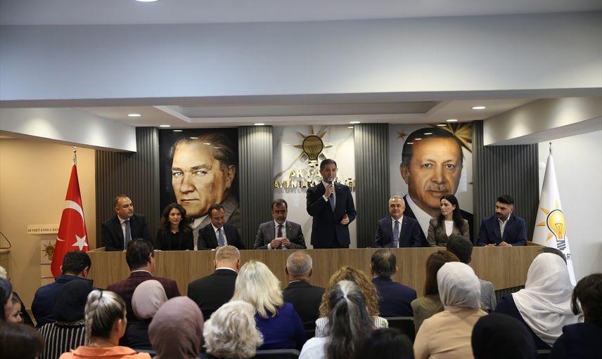 AK Parti Genel Başkan Yardımcısı Zafer Sırakaya (ortada), Aydın'daki temasları kapsamında partisinin İl Başkanlığını ziyaret etti.