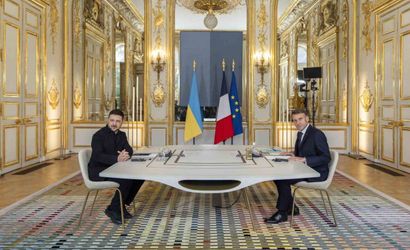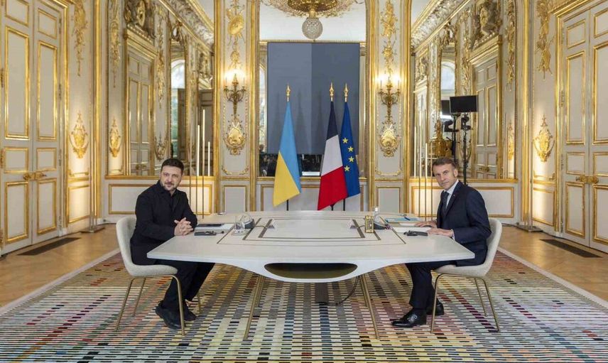 Ukrayna Devlet Başkanı Vladimir Zelenskiy, Fransa'ya gelerek başkent Paris'teki Elysee Sarayında Fransa Cumhurbaşkanı Emmanuel Macron tarafından karşılandı. Resmi karşılama sonrasında iki lider içeride bir araya gelerek görüşme gerçekleştirdi.