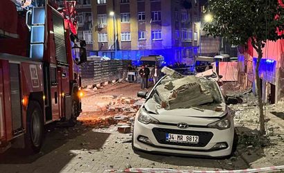 Zeytinburnu’da kentsel dönüşüm binasından düşen parçalar araçları kullanılmaz hale getirdi