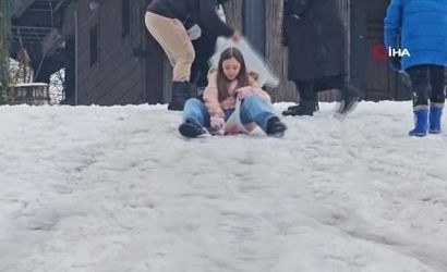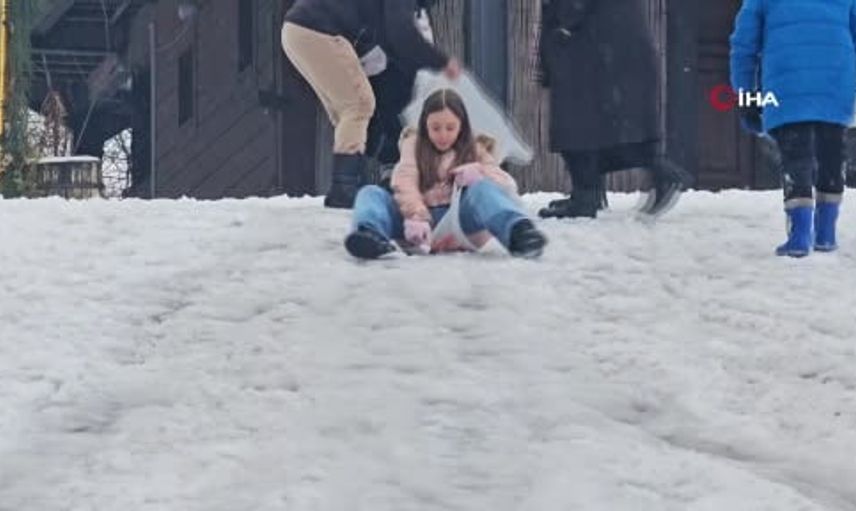 Karın tadını çıkaran çocuklar poşetle kaymanın keyfini yaşadı. Çocuğuyla birlikte karda vakit geçiren Umut Atay, "Geldik eğlendik. Şimdi de eve dönüyoruz" ifadelerini kullandı.