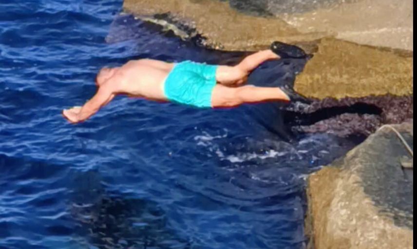 Dakikalarca denizde kalan kişi, bir süre sonra kıyıya çıkarak güneşlendi. Bölgedeki deniz suyu sıcaklığı 17 derece olarak ölçüldü.